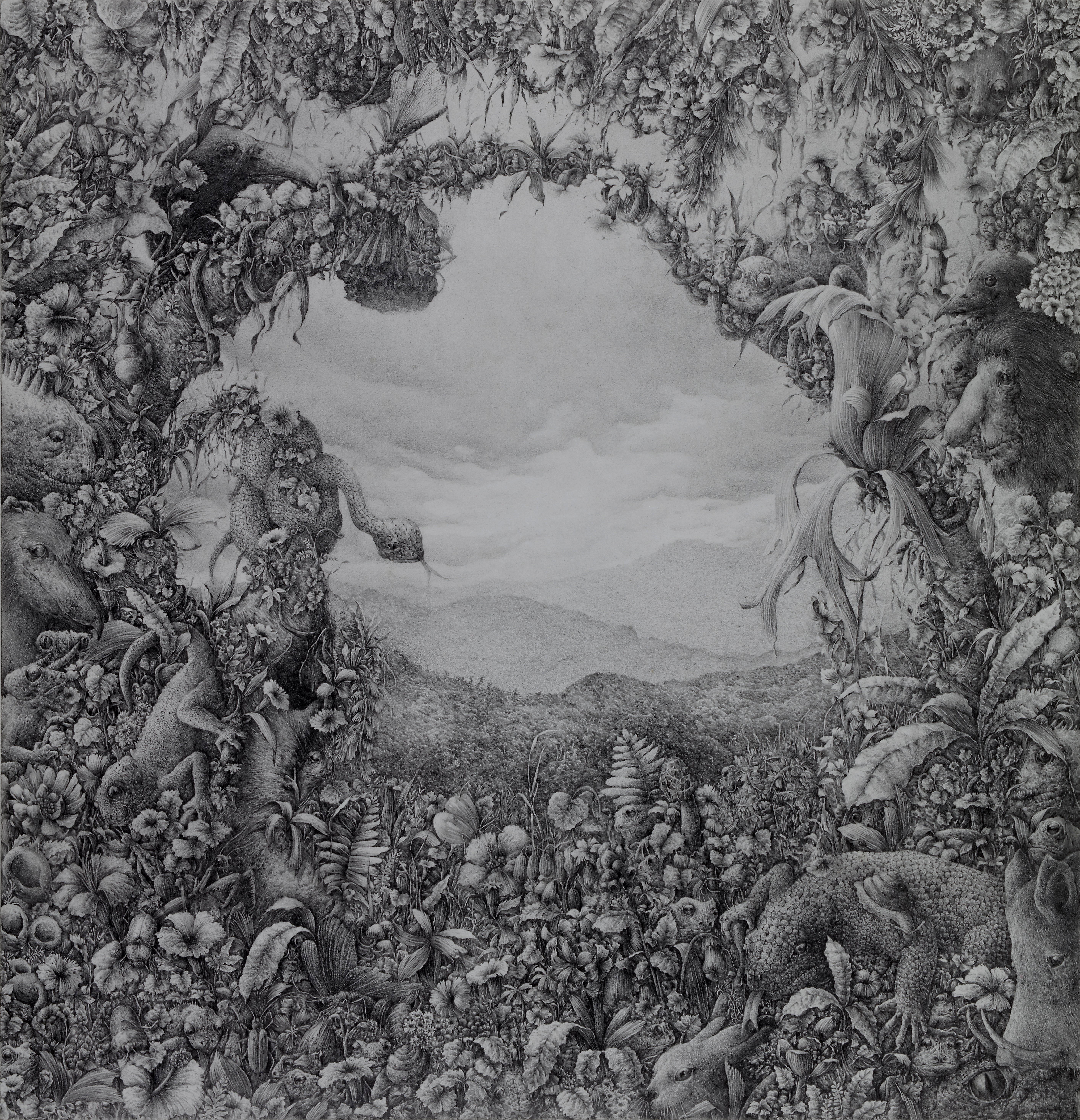 《 夢境–共游 》,2015。鉛筆繪於無酸紙,82.5 x 94.2 公分 。